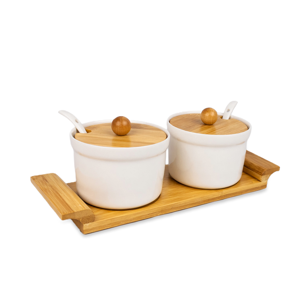 Set de 2 Saleros con Base de Bambu